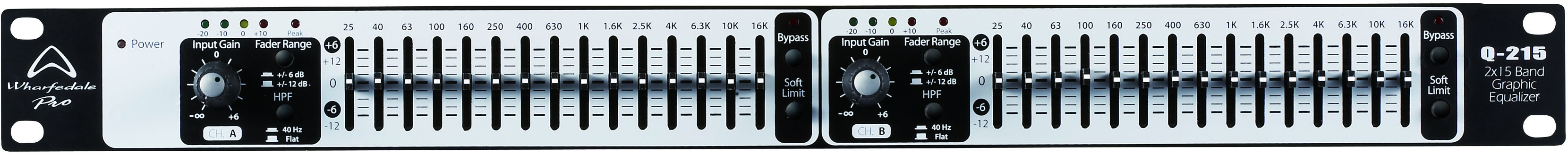The Q-215 is a dual channel 15 band 2/3 octave graphic equalizer using constant Q filters to maintain even bandwidth irrespective of gain ensuring transparent adjustments even with extreme gain settings. The Q-215 fits into a convenient 1U 19" rackmount chassis and has inputs and outputs on XLR and 1/4" TRS balanced / unbalanced connectors. Ground lift switches can eliminate any earth loop or hum issues. Power is supplied via an IEC connector.